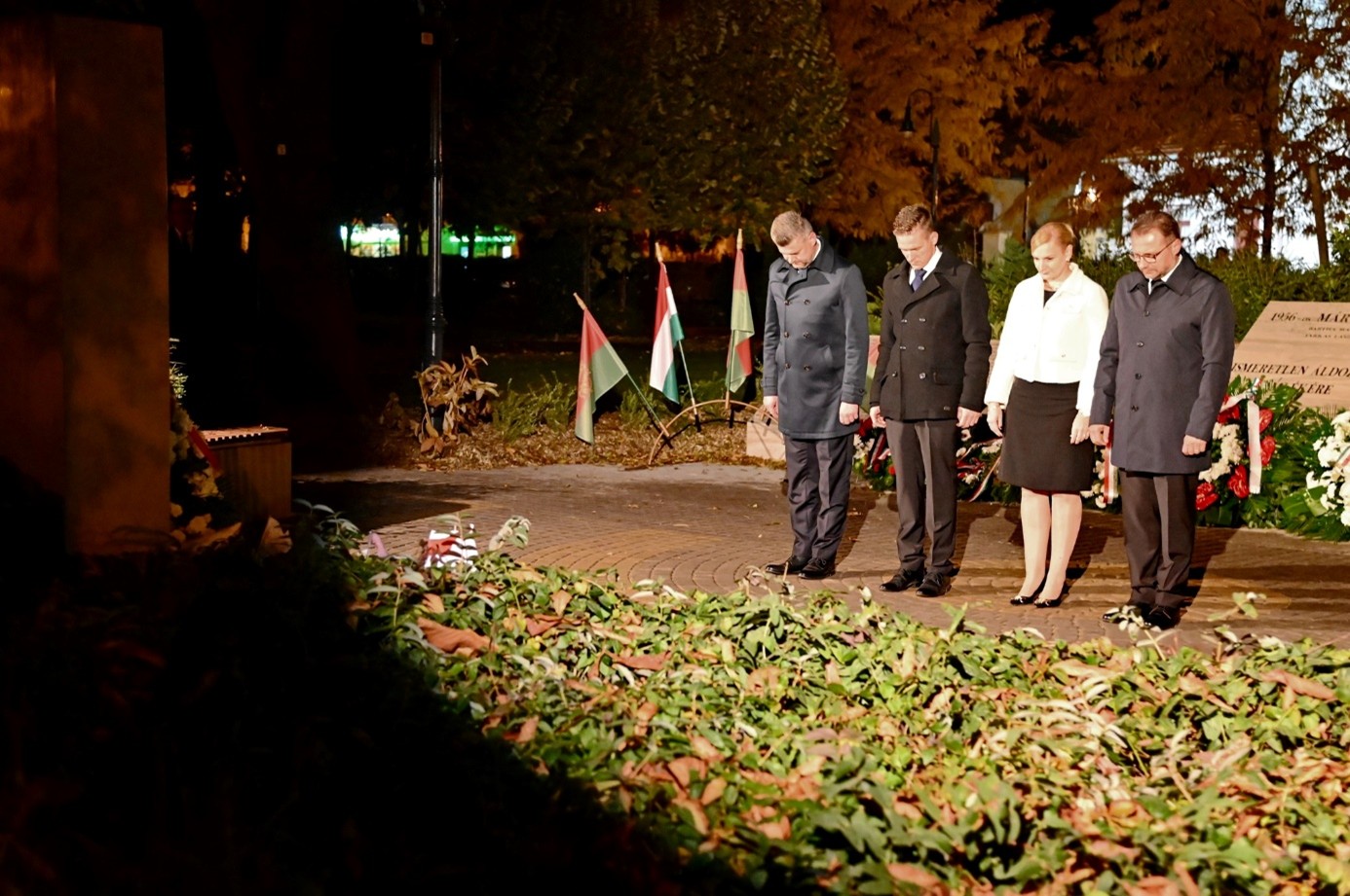„Ma este együtt vagyunk itt városunk központjában, a történelem és az emlékezés fényében. A nemzet szívében ma újra felcsendül a dátum 1956. október 23-a, amely minden magyar ember lelkében egyszerre jelent hitet, fájdalmat és büszkeséget” – ezt már Bujdosó Balázs egyéni önkormányzati képviselő, a megemlékezés szónoka mondta.